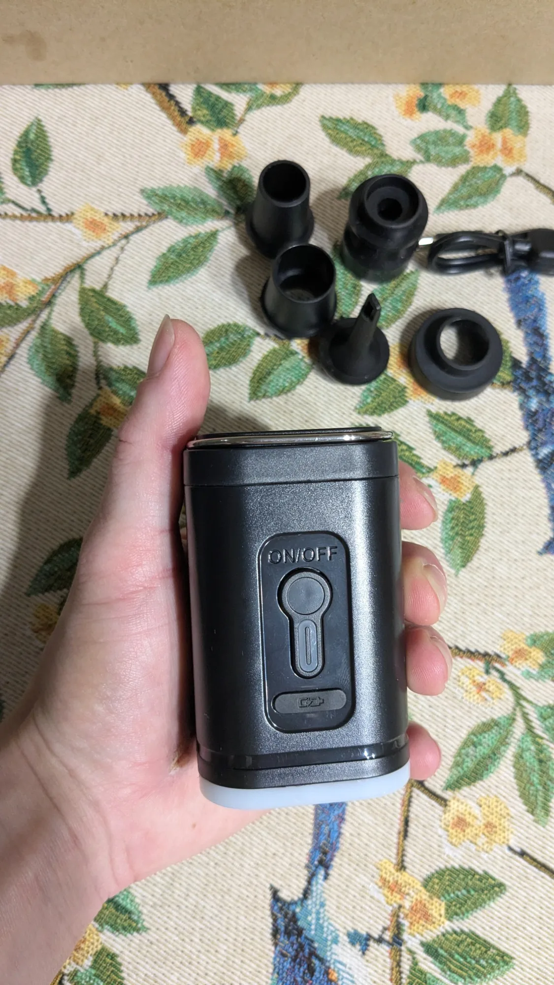 Excellent pump for camping needs! Inflates a single-person mattress in 1 minute, a pillow in 7 seconds. It’s a bit noisy, but for this duration of operation, it’s not a big deal at all. If all kinds of attachments and even a flashlight. Inflated 2 mattresses, 2 pillows, and the child even played with it a bit—still had some charge left. Compact, lightweight, fits in a small palm. There’s also a case, it’s convenient.